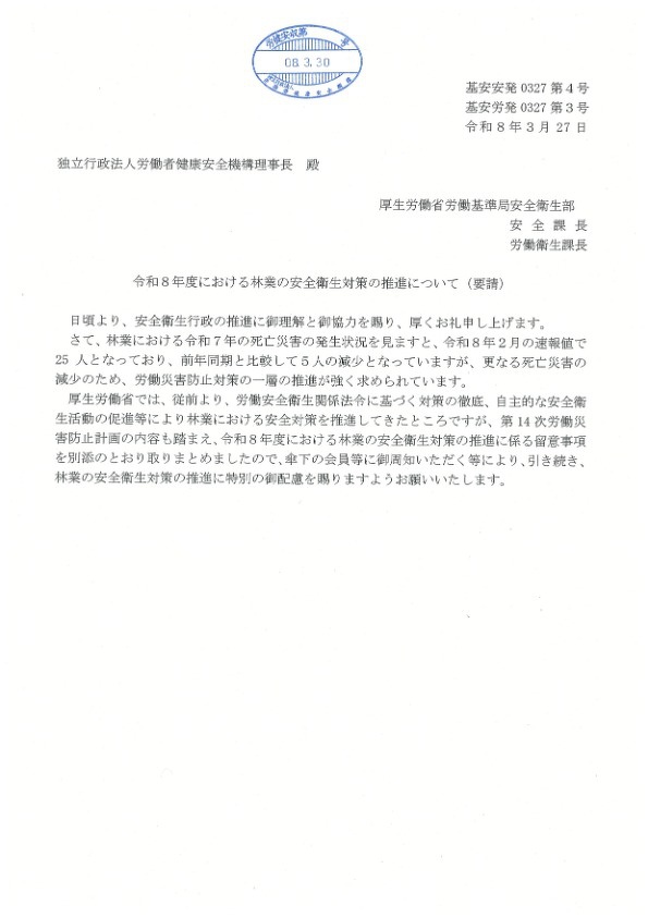 令和8年度における林業の安全衛生対策の推進について(R8.3.27)