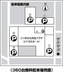 三木町文化交流プラザ 香川県木田郡三木町鹿伏360 電話:087-898-9222 三木町文化交流プラザ http://www.miki-plaza.jp/ 無料駐車場、360台。 (1)… 83台 (2)… 44台 (3)… 104台 (4)… 55台 (5)… 62台